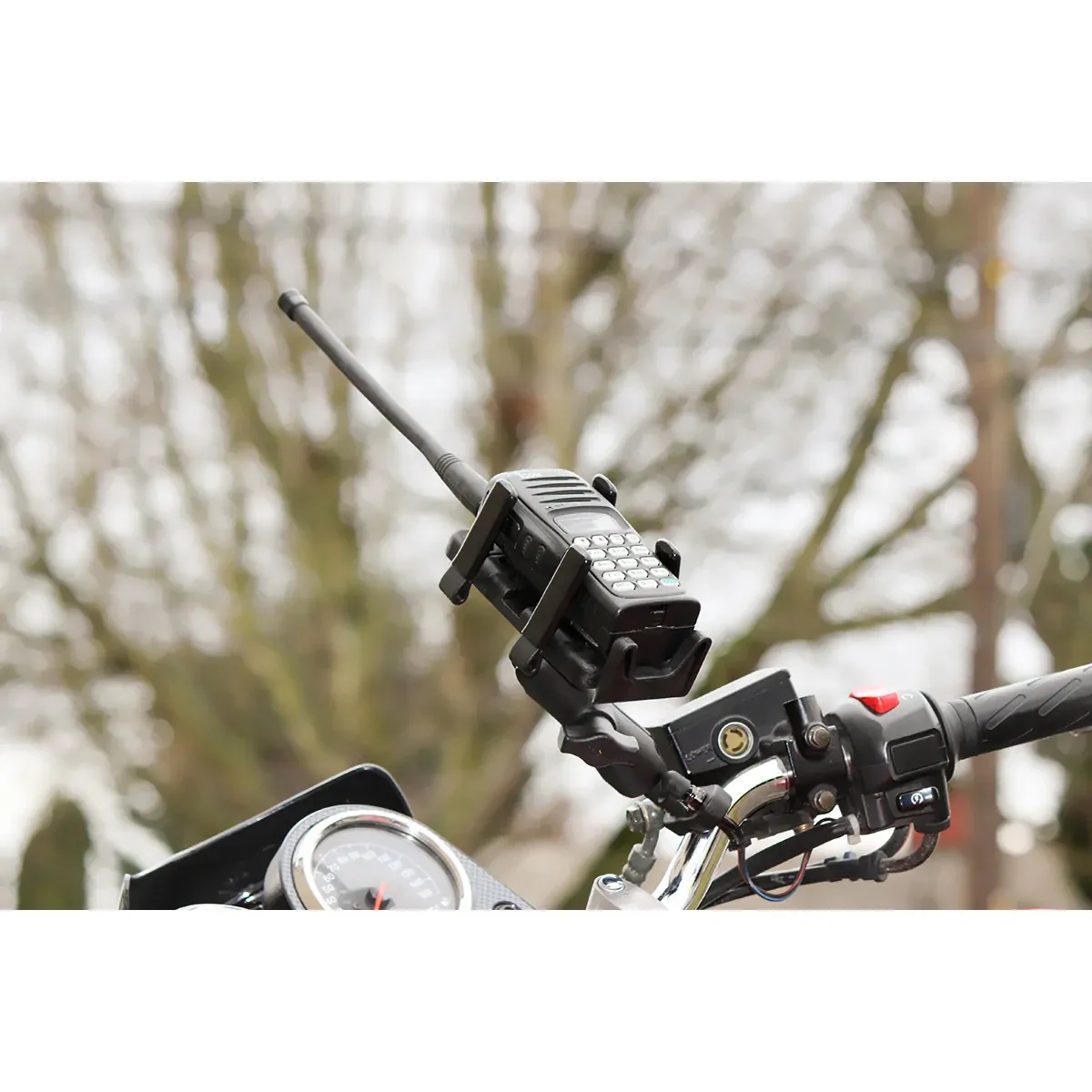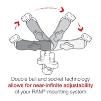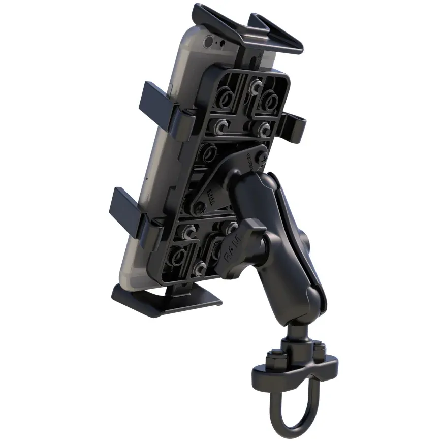 The RAM-B-149Z-UN4U consists of a zinc coated u-bolt base, double socket arm and universal Finger Grip cradle. The mount is designed with a RAM 1" diameter patented rubber ball and socket system that has adjustment points at both ends of the double socket arm; this allowing for almost infinite adjustment and perfect viewing angles. The RAM Composite Universal Finger Grip cradle is designed to hold a large amount of cell phones and electronic devices. The cradle comes with (3 sets) of four flexible rubber coated fingers placed along sides to grip your device. The fingers open by squeezing the ends to open the small finger arms. The bottom of the cradle includes a back plate that adds support to the device being held by the mount. The spine plate contains the universal AMPs and 1.5" x 2" hole patterns.