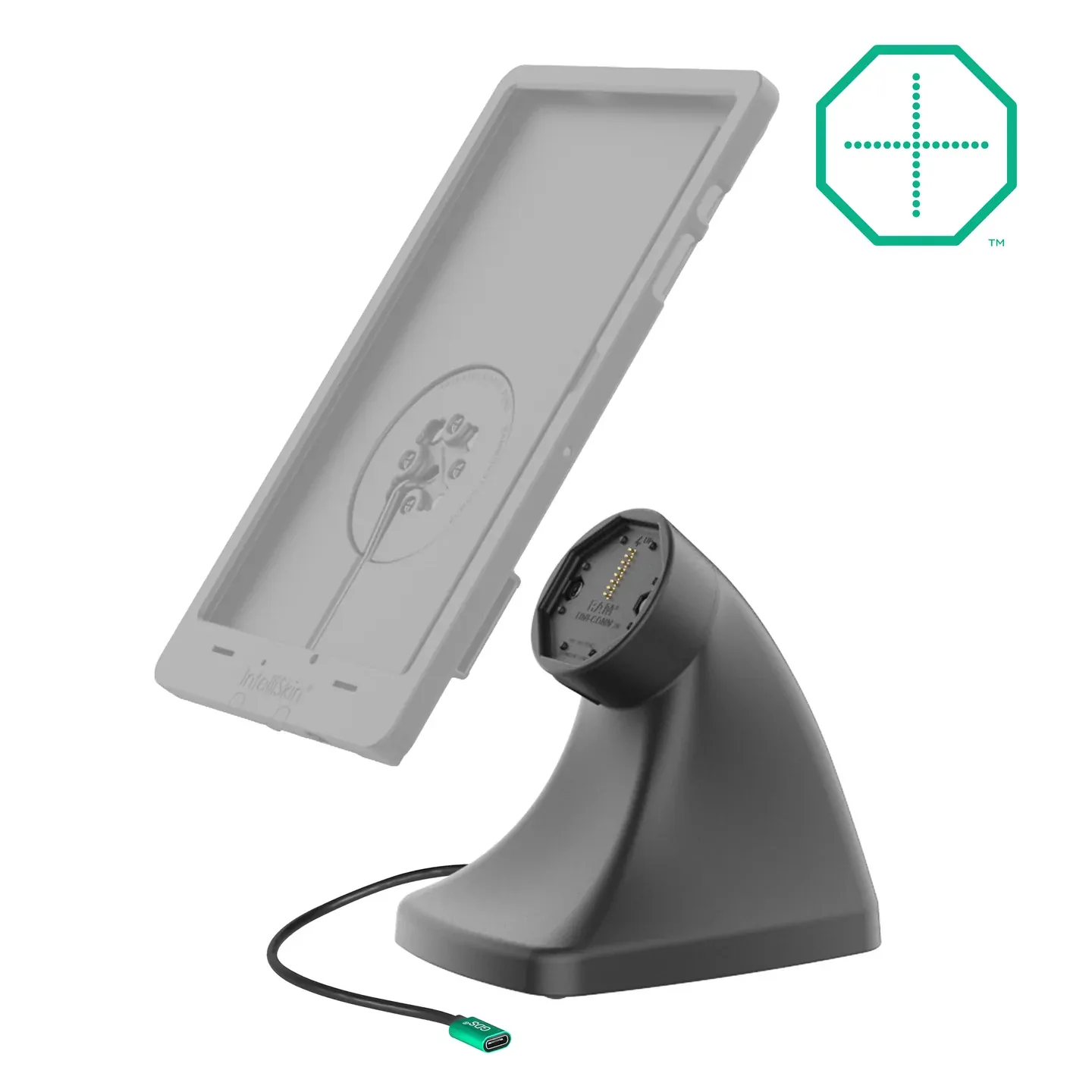 The GDS Uni-Conn Powered Kiosk Dock with USB-C (RAM-GDS-DOCK-D10K-C) is a free-standing, powered dock for devices enclosed in an IntelliSkin Thin-Case with Rear Pogo Pads. Easily dock and undock your device with the assistance of the magnetic attachment mechanism. Power is provided to the pogo pins integrated into the GDS Uni-Conn adapter via USB-C connection. This dock features a weighted base and rubber pads that provide theft deterrence and prevent it from sliding around on surfaces.