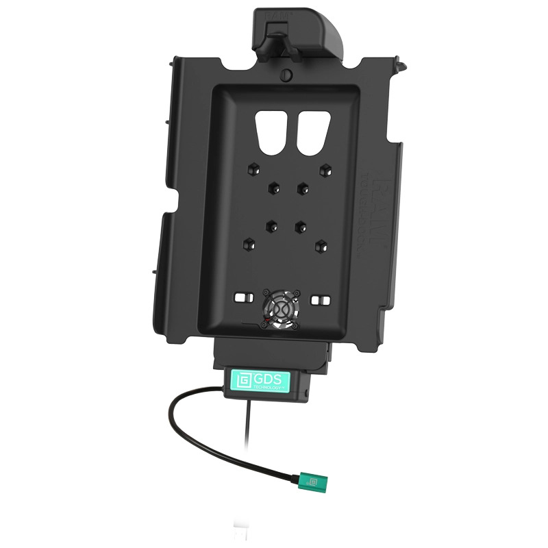 The GDS Cool-Dock is the upgraded version of the GDS Tough-Dock including a built-in 12-VDC Axial cooling fan with a 2.2 meter long hardwire charger. The GDS Cool-Dock is the turnkey vehicle dock in the GDS Tech line of vehicle docks designed to support the Apple iPad Pro 12.9 3rd, 4th & 5th Gen in an IntelliSkin Next Gen protective sleeve for your fleet. Using a USB Type-C power connector, the GDS Cool-Dock supports high-speed charging capabilities for the Apple iPad Pro 12.9 5th Gen. The GDS Cool-Dock is compatible with RAM ball and socket systems and requires a 4-hole AMPS pattern ball adapter. The GDS Cool-Dock is backed by a 3-year warranty. Get the Heat Out! with GDS Cool-Dock.