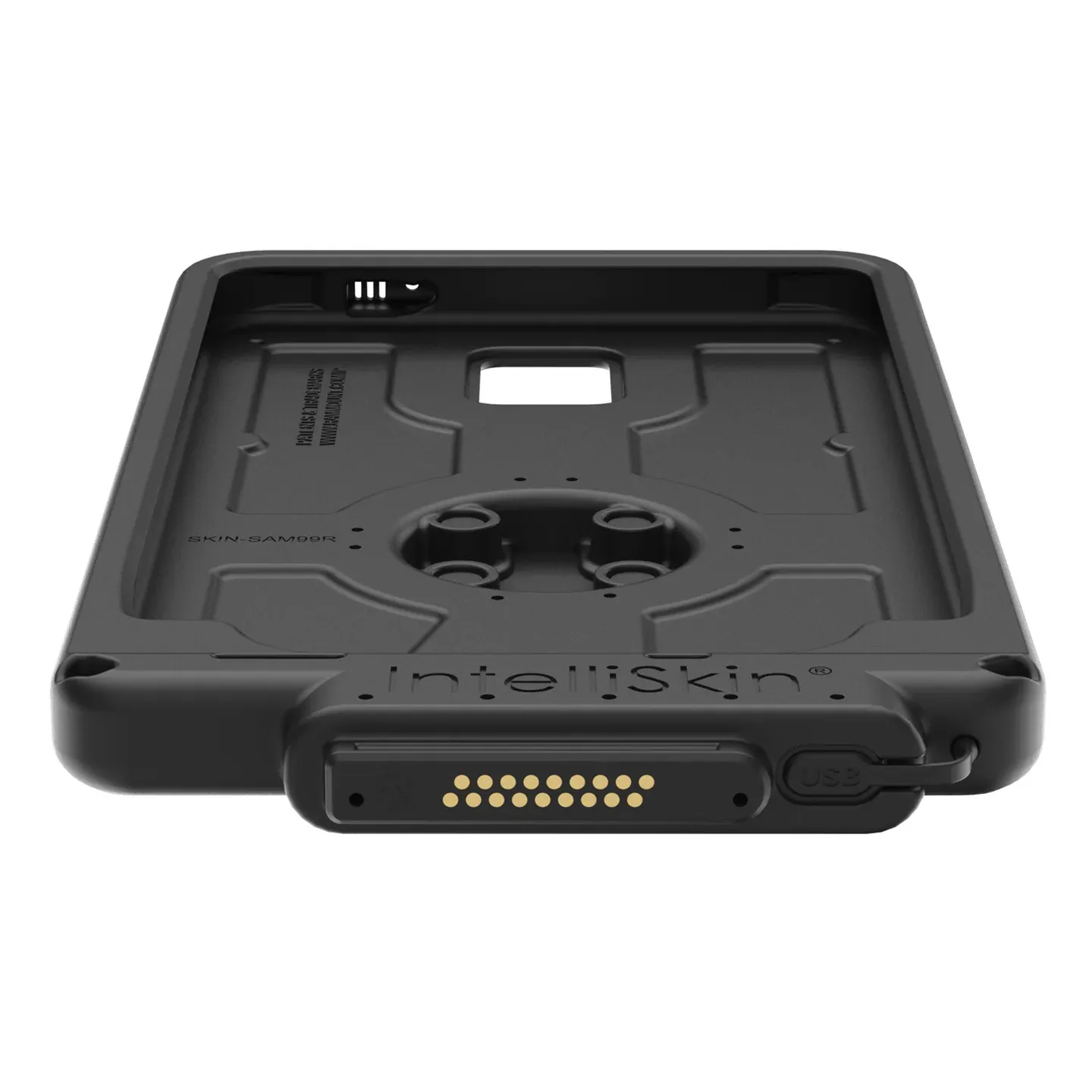 The IntelliSkin Next Gen for Samsung Tab Active5 (D Shape & Rear Pads) (RAM-GDS-SKIN-SAM99DB-NG) is an insert molded design that combines a hard plastic shell with soft, shock-absorbing rubber and two integrated GDS connectors that upgrades the device's USB-C port to flat, ruggedized pogo pads.The dual connection styles are the rear pogo pads on the GDS Uni-Conn Adapter and the Distinctive D Shape bottom platform. The flat, ruggedized pogo pad contacts are made for repetitive docking to protect the device's port and collect less dirt making them easier to clean. An integrated USB Type-C connector at the bottom of the case allows for device charging even when you dont have a GDS Dock available. This sleeve features military-grade drop protection and includes a dedicated slot for the S Pen. The IntelliSkin Next Gen for Samsung Tab Active5 (D Shape & Rear Pads) is compatible with all GDS Uni-Conn docks. IntelliSkin is not compatible with the GDS Tough-Dock product line.