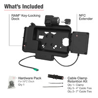 This key-locking powered vehicle dock (RAM-HOL-SAM58CPKL-NFCU) for the Samsung Tab Active5 & Tab Active3 comes with a RAM NFC Extender. The NFC extender acts as an extension of the NFC reader on the back of the Tab Active5 & 3 giving end users easier access to the scanning function. With easier access to the NFC reader, tablet operators no longer need to remove the device from its docking station to scan - simply install the repeater on your docking station and give easy access to programs like Tap To Pay, asset tracking, time management, and more. The repeater extends to 30cm in length and installs on the back of the dock, directly behind the device's NFC reader. This charging vehicle dock has been designed to meet the demands of commercial truck drivers, field service technicians, pupil transporters, logistics managers, forklift operators, and more. Power capabilities through the dock are provided to the device through pogo pin technology, taking advantage of the Tab Active5 & 3's pogo pad docking contacts-simply dock the device and the pogo pins match the pattern of the pogo pads for a seamless charging experience. This dock is also compatible with the RAM Skin or factory device skin, as well as GDS Hand-Stand and shoulder strap accessories. Access to the stylus remains while the device is docked. Included is a set of four nuts and bolts to connect the dock to any RAM components containing the universal AMPS hole pattern.