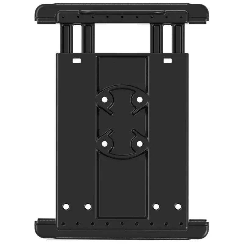 The RAM Tab-Tite spring-loaded, quick release holder offers a secure fit with easy access to the mounted tablet. The spring-loaded design makes it easy to insert and remove your tablet, while keeping it secure in a variety of applications. The custom end cups are designed to optimize the functionality of your tablet, enabling access to all buttons, ports, and tablet functions. Included is a set of four nuts and bolts to attach the holder to any RAM components that contain the universal AMPS hole pattern. For off road environments and use in open cockpit applications, we recommended the use of a tether to assist in securing your device. The RAM Tab-Tite holder is compatible with any tablet within the listed dimensions.