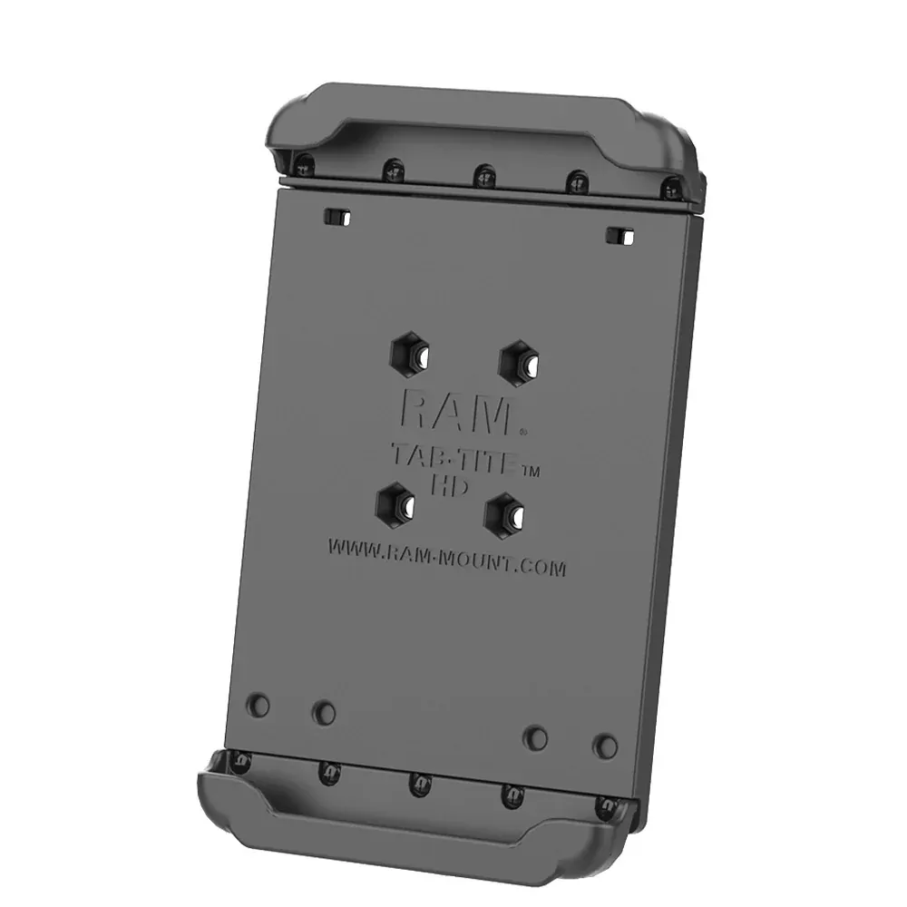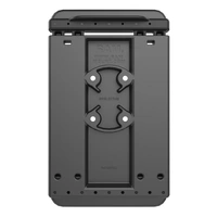 The RAM Tab-Tite spring loaded, quick release cradle offers a secure fit with easy access to the mounted tablet. The interchangeable cup ends are designed specifically for the Samsung Galaxy Tab 4 7.0. The spring loaded design makes it easy to insert and remove your tablet, along with keeping it secure in mobile applications. The custom end cups are designed to optimize the functionality of your tablet, enabling access to all ports and tablet functions. The included back plate is interchangeable with various size support cups, making it compatible with numerous tablet models. New detachable support cups are the only components needed for purchase, attach to the back plate for support of your new tablet. Included is a set of four nuts and bolts to connect the cradle to any RAM components or mounts that contain the universal AMPs hole pattern. For off-road environments and extreme use, we recommended the use of a tether to assist in retaining your device. The Tab-Tite cradle is compatible with any tablet that will fit the dimensions listed below. It is important to verify the dimensions of your tablet when determining the overall size.