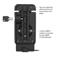 The RAM Powered Locking Vehicle Dock for Zebra EM45 Without Case (RAM-HOL-V15-ZE38PLU) is a rugged dock that will meet and exceed the demands of modern workflows, featuring a USB-C connection tested for more than 250,000 cycles. The spring-loaded design of this dock allows for a quick one-handed insertion or removal of your device while the precise design of the dock body minimizes human error and port damage when docking the device onto the USB-C male connector. The back cavity of the dock accommodates ergonomic accessories secured to the back of the device. An integrated cutout on the top allows for the ability to access the device's top button without removing the device from the dock. The key lock provides peace of mind and theft deterrence for high-traffic environments. Complete the solution by building your mount - this holder is RAM Compatible featuring a 2-hole AMPS pattern for adding a diamond ball adapter.