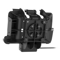The RAM Tough-Dock for Zebra ET40 & ET45 8" enterprise tablets with Rugged Frame allows you to keep the device charged through the pogo pin contacts when the device is docked—power is provided by connecting to the dock's 5.5mm DC power jack. The dock also allows the tablet's scanning function to work on the side, as well as tablet add-ons such as the Zebra Expansion Back and PowerPack Battery. This vehicle dock is compatible with C and D size RAM 4-hole AMPS and 75mm x 75mm VESA pattern bases for attaching a double socket arm in order to complete your mounting solution. Take the solution a step further by taking advantage of the built-in 2-hole mounting plate compatible with RAM 2-hole diamond base for additional device mounting such as a phone or other handheld device.