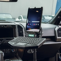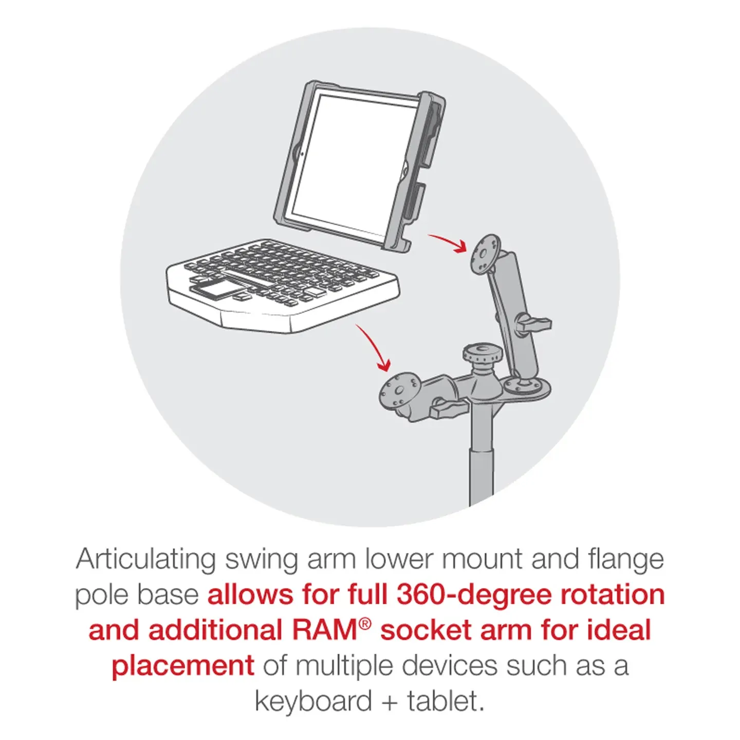 The RAM Tele-Pole with 12" & 18" Poles and Double Ball Mount (RAM-VP-SW2F-1218) is an in-vehicle workstation mount that features a RAM Tele-Pole 18" base, RAM Tele-Pole 12" upper pole with flange, 6" swing arm, and a long C size double socket arm. Easily connect any RAM tablet mount or holder to the flange double ball mount and connect our GDS Keyboard to the swing arm system to complete the ultimate mobile workstation. With the ability to swing the keyboard out of the way when not in use as well as position the monitor at nearly any angle, ensure your mobile workstation is backed by RAM Mounts for strength, durability, and versatility.