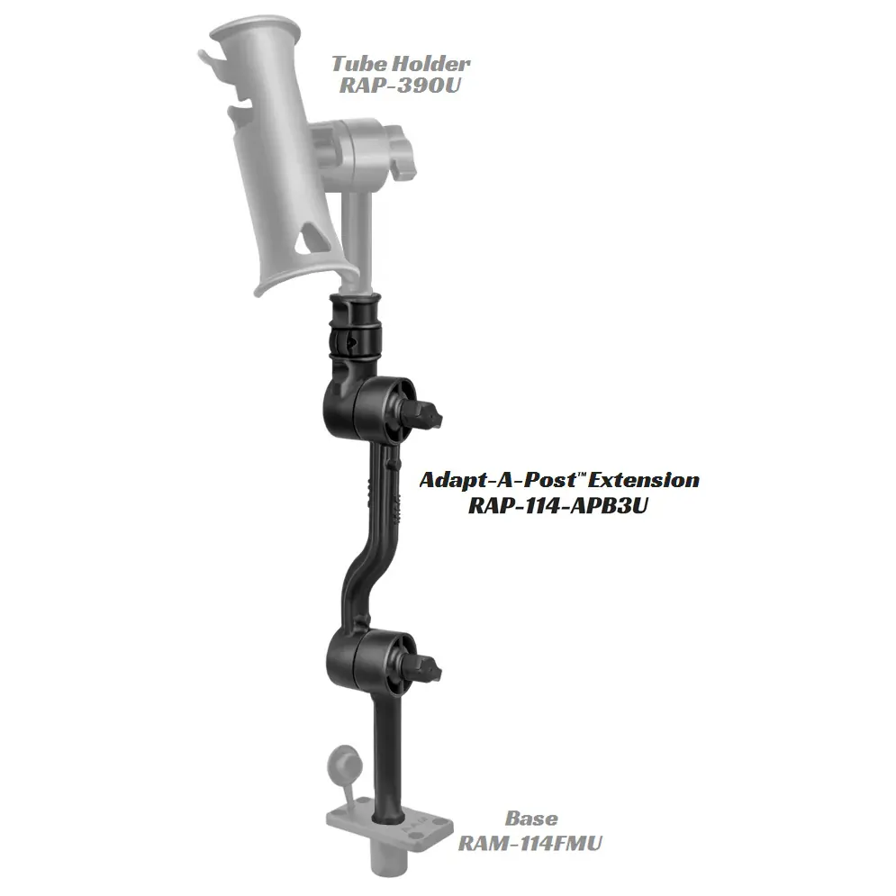 Get your fishing rod closer to you, closer to the action, or simply out of the way with this latest extension from RAM. Rugged, high strength composite construction ensures years of performance on the water. The RAM Adjustable Adapt-A-Post Extension Arm will lift your RAM ROD holder up off of the deck and enable ideal positioning in tight spaces such as on kayaks. The included quick release female post and spline adaptor are simple to engage and release; this making it easy to move your mount to various positions on your kayak, or for stowage. Compatible with the most popular RAM fishing rod holders and bases, this extension option is a simple add-on that is sure to add more fun and comfort to your day on the water.
