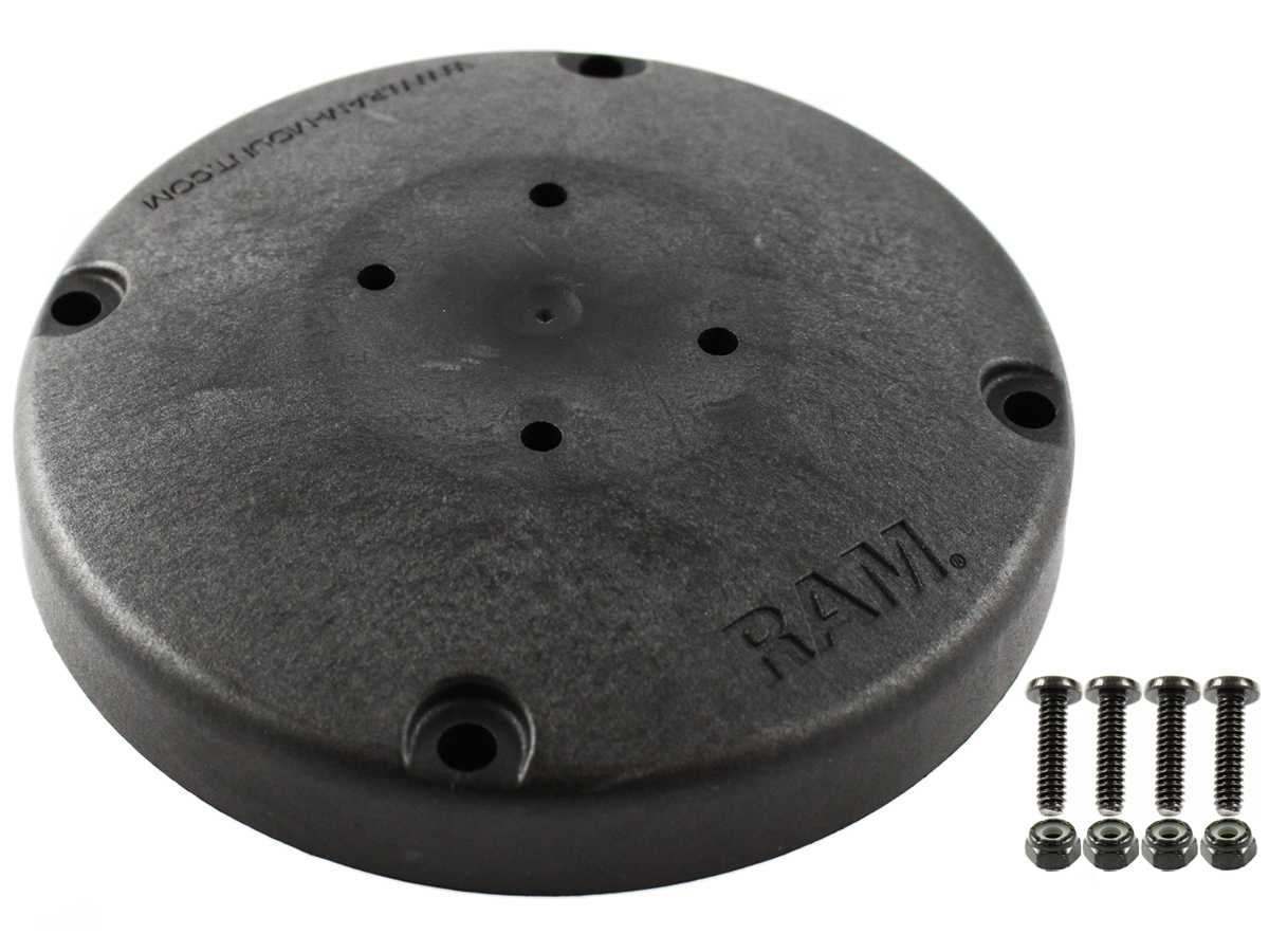 Round platform base for either resting on or screwing down to a flat surface, and then attaching an AMPS hole pattern part (such as RAM-B-202 or RAM-202)