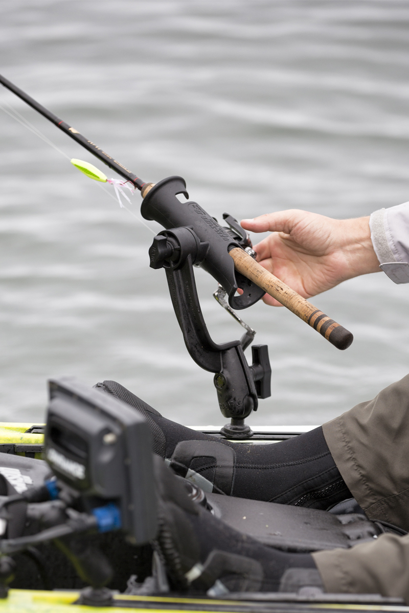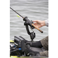 Ideally suited for a wide range of applications and fishing vessels, this rod holder is quickly becoming known as the most versatile rod holder on the market. This configuration includes the RAM-ROD™ Revolution ratchet arm with single open socket. Combining the patented RAM rubber ball and socket system with a ratcheting feature; this rod holder has almost infinite adjustability and configuration options. Easily collapse the rod holder down on the deck for clearing your casting path or articulate over the water, and out of the boat or kayak. Rod holder doubles as a stake out pole holder.