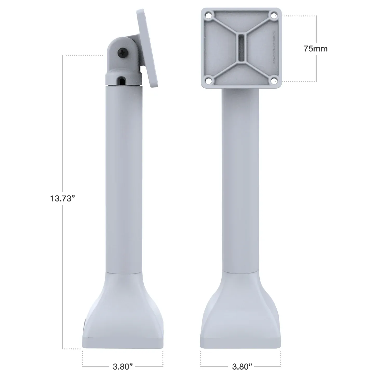 The RAM 14" Pedestal Mount with 75mm VESA Pattern - Gray (RAP-D11-14-V75-GRY) is a free-standing, 14-inch pedestal that allows you to mount any RAM powered dock or passive holder to create a workstation that maintains the mobility of your tablet. Designed for flexibility and stability, this solution features a 180-degree swivel base and 180-degree device tilt, allowing for optimal viewing, positioning, and screen-sharing with co-workers or customers. Ideal for retail, hospitality, food service, and other point-of-sale or customer-interaction environments, this mount supports VESA 75mm pattern for broad device compatibility alongside RAM docks and holders. A drill-down base ensures a secure, fixed installationmaking it perfect for high-traffic or semi-permanent setups. Made in a light gray color, the mount blends seamlessly into clean, modern, and aesthetic environments where subtlety and professional appearance matter.