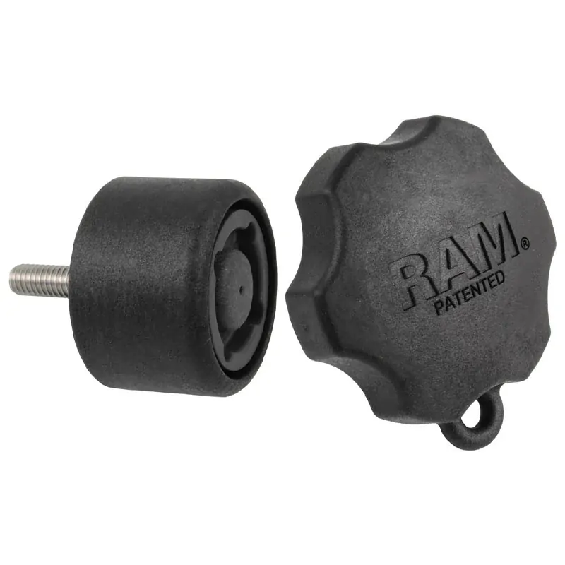 The RAP-S-KNOB7-4U consists of a 5/16"-18 female threaded security knob, nut and key knob. The RAP-S-KNOB7 replaces the knob directly underneath the gimbal plate on all RAM swing arm mounts. The RAP-S-KNOB7-4U offers the ideal amount of leverage to properly tighten your mount to prevent slippage in heavy chop or in extreme vibration environments. With an emphasis on aesthetics and function, the RAP-S-KNOB7-4U is low in profile and only adds a small amount of additional bulk to your system when compared to the standard knob included. At a fraction of the cost of currently available keyed locking knobs, the additional peace of mind and tamper resistance comes at a very affordable price. The RAP-S-KNOB7-4U is the perfect accessory for keeping your mounted electronic device safe from theft and tampering.